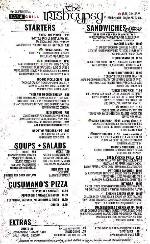 The Irish Gypsy, located in O'Fallon, MO, is a vibrant Irish pub and sports bar that offers a wide range of amenities, including vegan options and wheelchair accessibility. Customers rave about the exceptional service and delicious food, with standout dishes like the French dip and chicken fried chicken. The menu features mouth-watering options like the Reuben sandwich and fried bologna sandwich, accompanied by sides like the flavorful Italian dressing salad. The atmosphere is cozy yet lively, perfect for enjoying a meal with friends or catching a game on TV. With friendly staff and a menu that goes the extra mile to impress, The Irish Gypsy is a must-visit destination for anyone looking for a memorable dining experience.